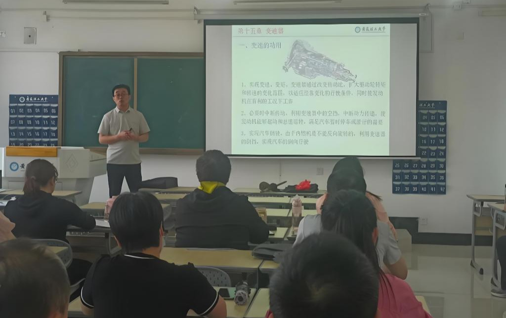 张国荣就《汽车构造》进行了现场示范教学。张国荣教态亲切,教学环节衔接自然,课程思政润物无声,语言表达简洁流利且富有感染力,展示出较高的教学理念、教学方法和教学手段。