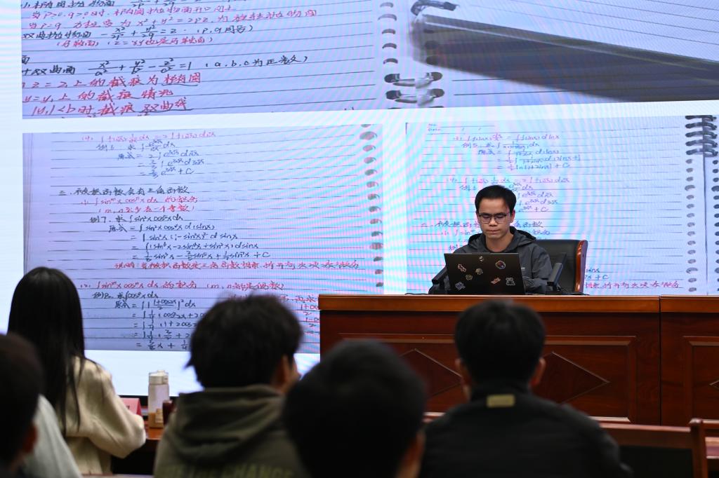 拟获评2023-2024学年“校一等奖学金”、高等数学两学期满分赵超,他着重说明了高数在工科学习中的重要地位,将高数形象地比喻为工科的生命线,分享了若干极具价值的高数学习方法。