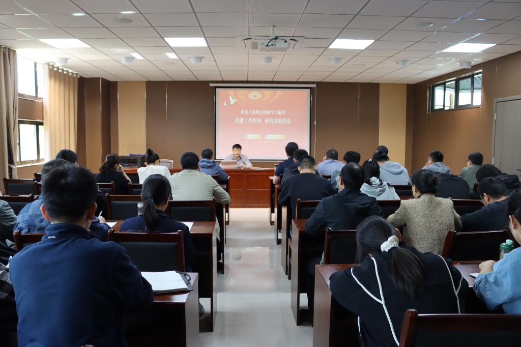 随后,程刚以《改进工作作风,密切联系群众》为题,为全体党员讲授专题党课。程刚围绕提高政治站位、准确把握要求、强化使命担当三个方面,对中央八项规定精神及其实施细则精神进行了深入解读。他强调,全体党员要从坚定拥护“两个确立”、坚决做到“两个维护”的政治高度,深刻认识贯彻中央八项规定精神及其实施细则精神是长期有效的铁规矩,始终保持对纪律和规矩的敬畏之心。在实际工作中,认真查摆自身在作风方面存在的问题,坚持立行立改,做到真改实改。同时,要将学习教育与学院中心工作紧密结合,把作风建设成果转化为推动学院发展的强大动力,积极投身到教学科研、人才培养、社会服务等各项工作中去,以实际行动为学院发展贡献力量。