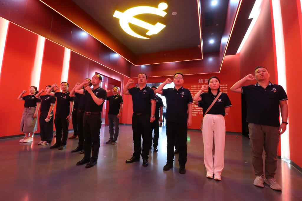 参观结束后,全体党员面向党旗,重温入党誓词,进一步坚定理想信念,牢记初心使命。