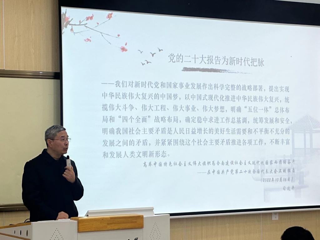 1月17日下午,学院特邀党的二十大代表、“时代楷模”、“最美奋斗者”、“全国道德模范”、“全国优秀教师”、教育部师德师风建设专家委员会委员路丙辉教授,开展以《新时代教师的修养方向》为主题的师德师风专题讲座。讲座由学院党委副书记(主持工作)程刚主持,全院教职工参会。