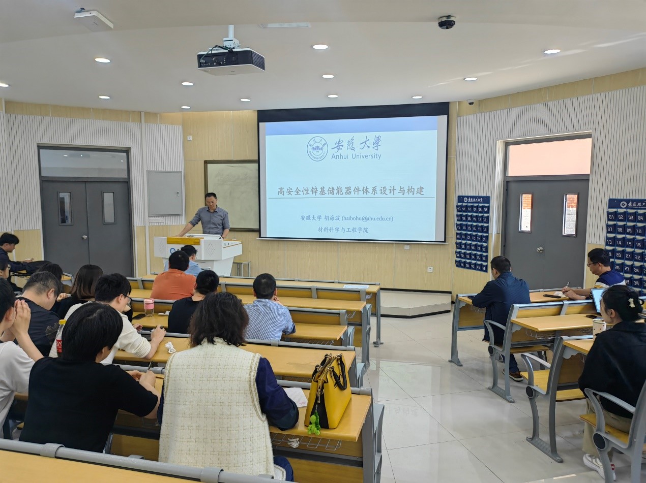 4月22日下午,安徽大学胡海波教授应邀来我院作《高安全性锌基储能器件体系设计与构建》的学术报告,报告会在耕心楼111报告厅举办。