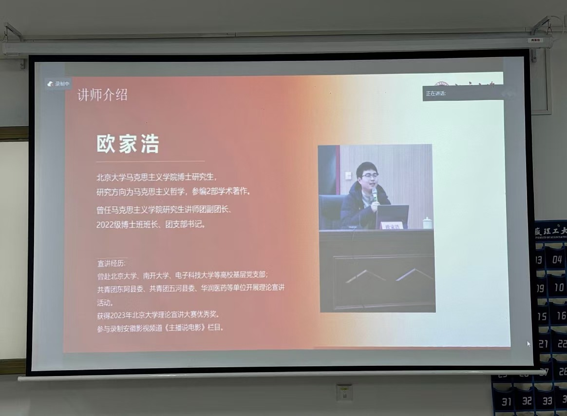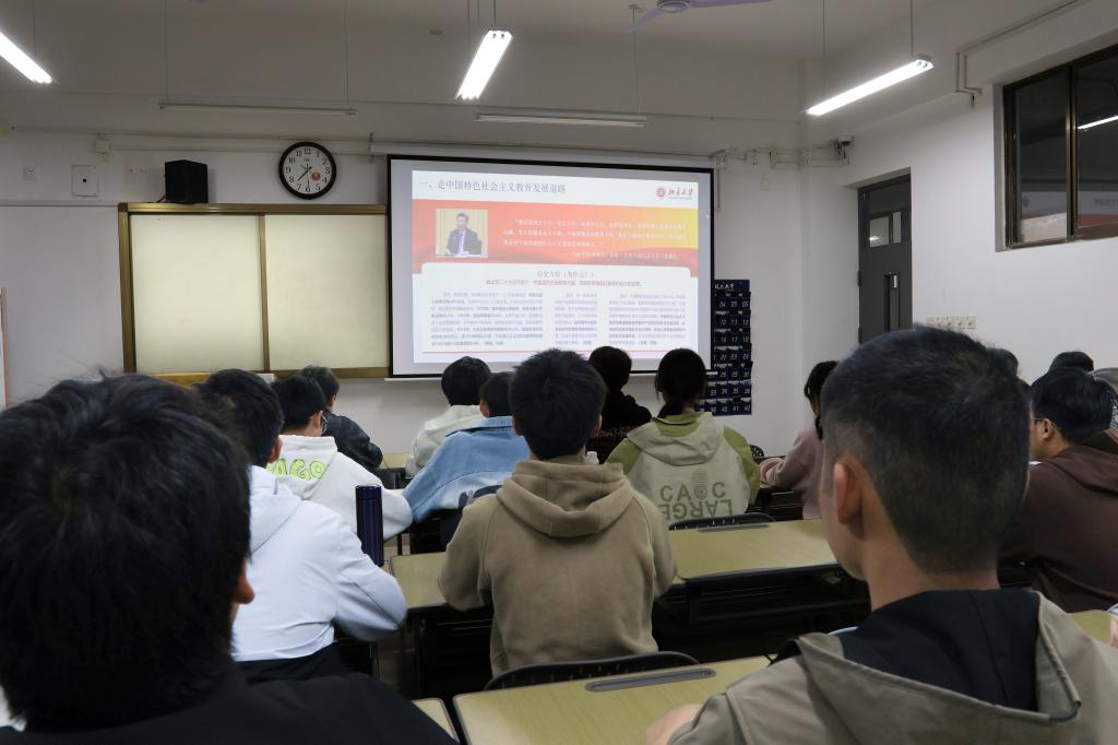 此次宣讲主题是《“立德树人”:走中国特色社会主义教育发展道路》。欧家浩从走中国特色社会主义教育发展道路、教育发展的政治方向、教育发展的中国特色、教育发展的强力措施等方面为学生们阐述教育对于社会发展的重要意义。他鼓励学生结合专业所学,矢志不渝践行科技报国之志,勇做走在时代前面的奋进者、开拓者、奉献者。