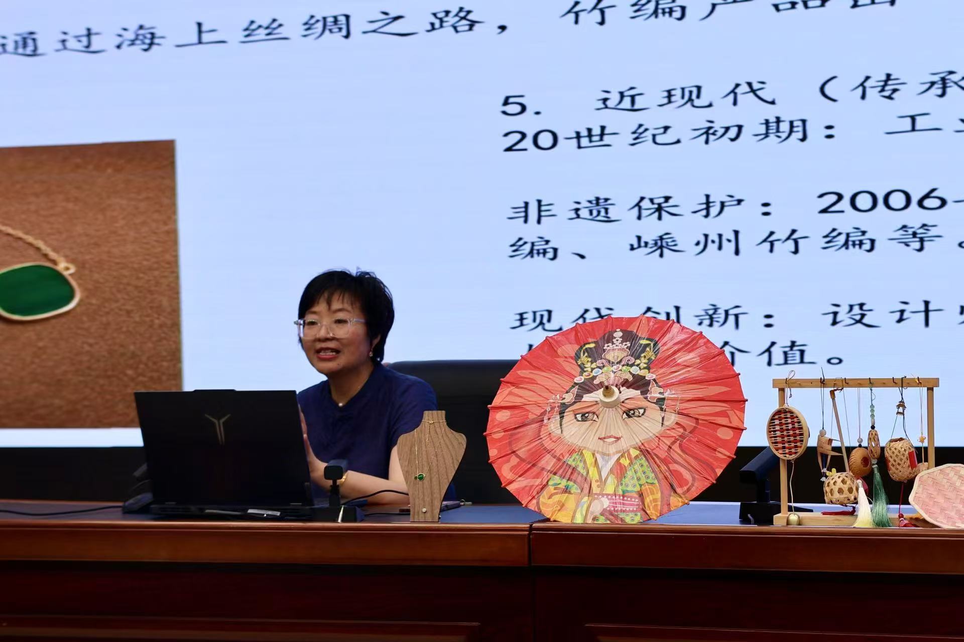 活动开始前,学院党委副书记李连城作开场致辞。接着,张世玲围绕油纸伞和竹编文化的“前世今生”展开分享,演讲内容丰富详实,涵盖了深厚的文化背景与历史渊源。同学们全神贯注,被讲述者创业背后的动人故事深深吸引。在讲座过程中,同学们积极与专家互动,提出了许多关于竹编文化的问题,专家也耐心地解答,让大家在知识上有了更深的领悟。然后,专家走到台下,亲自指导大家进行手工艺品的制作,竹丝在匠人指尖灵活穿梭,化作精美的艺术品,承载着干年的文化底蕴,同学们热情高涨,经过一番努力,制作完成了精美的竹编画和风铃。最后,合影留念,本次非遗文化体验活动圆满结束。