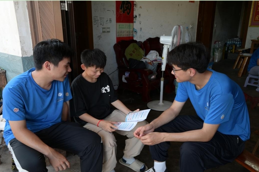 拉紧防溺警戒线,倾注课业辅导情。第三站,团队赶赴宣城市泾县周冲村,开展防溺水主题宣传活动,化身“课业小导师”,为当地儿童送去温暖关怀,助力乡村儿童健康茁壮成长。队员们分组走进村民家中,与村民们围坐一堂,展开了深入交流。队员们以近期发生的真实溺水案例作为切入点,巧妙结合精心绘制的主题漫画,运用通俗易懂的语言,向儿童及家长详细地讲解了戏水可能带来的严重危害、预防溺水的“六不准”原则,以及溺水后正确的自救与施救方法。防溺水知识分享环节结束后,面对孩子们满是求知欲的眼神,队员们迅速转换角色,从“安全讲师”顺利变身“学习小导师”。在临时组建的“学习小课堂”里,队员们耐心地辅导孩子们一步步拆解数学计算题的解题步骤,逐字逐句地指导语文作文的构思与表达。队员黄旭面带微笑,鼓励孩子们:“大胆说,答错也没关系,我们一起把难题‘打败’!”