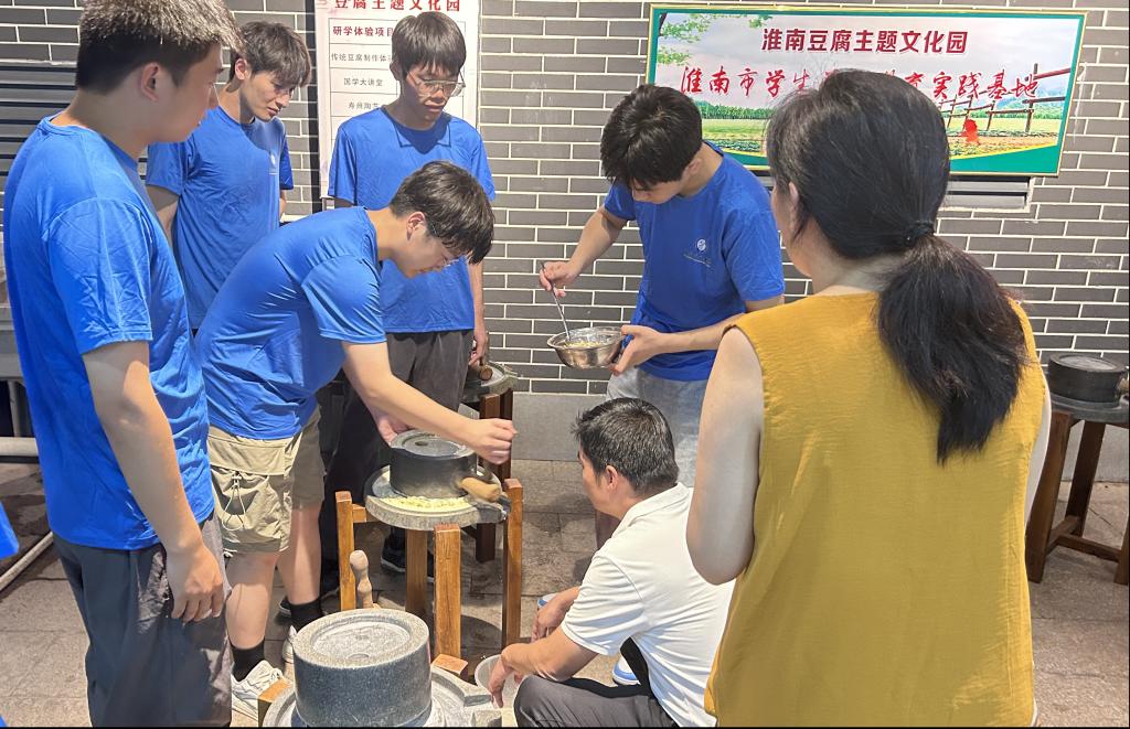 7月14日-15日,学院“楚韵薪传:寿县非遗守护与青春赋能行动”团队深入淮南市寿县,开展为期两天的文化溯源与精神寻根之旅。队员们奔赴寿县豆腐主题文化园,在缕缕豆香中,同学们亲手体验千年豆腐制作工艺,感悟“一箪食”背后蕴藏的劳动智慧与非遗韧性。接着,成员们走进寿县楚文化博物馆,参观了汉代陶制水磨冥器及石磨,见证了豆腐制作的悠久历史。
