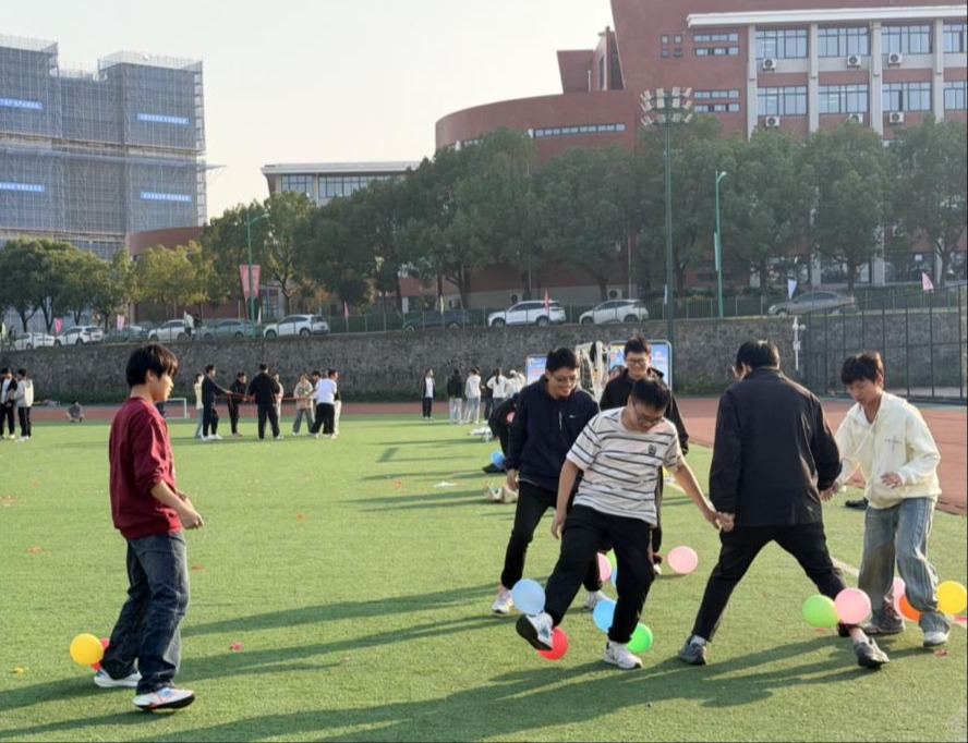 下午14时30分,活动正式拉开帷幕。尽管寒意渐浓,同学们的热情却丝毫不减。本次运动会设置了个人赛与团体赛两大类项目,包括“踩气球”、“飞行棋”、“套圈”、“射击”、“高山流水”、“同心击鼓”、“旋风跑”等七个趣味项目,既有考验个人反应与技巧的环节,也有强调团队配合与心理韧性的集体挑战。