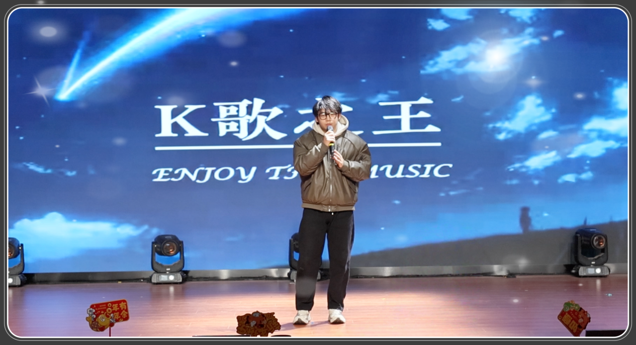 特邀安徽国际商务职业学院的"觅光乐队",以一首澎湃激昂的《海阔天空》首发登场,激昂的旋律与励志的歌词,瞬间点燃了全场观众的热情。随后,学院学子轮番登场:杨召同学深情演绎《等你下课》,清新质朴的歌声唱出校园时光的纯真与美好;高嫣然同学则以一支活力四射的流行舞《Gee》惊艳登场,精准的节奏把控与充满活力的舞姿,展现出青年学子的蓬勃朝气,引来阵阵喝彩。