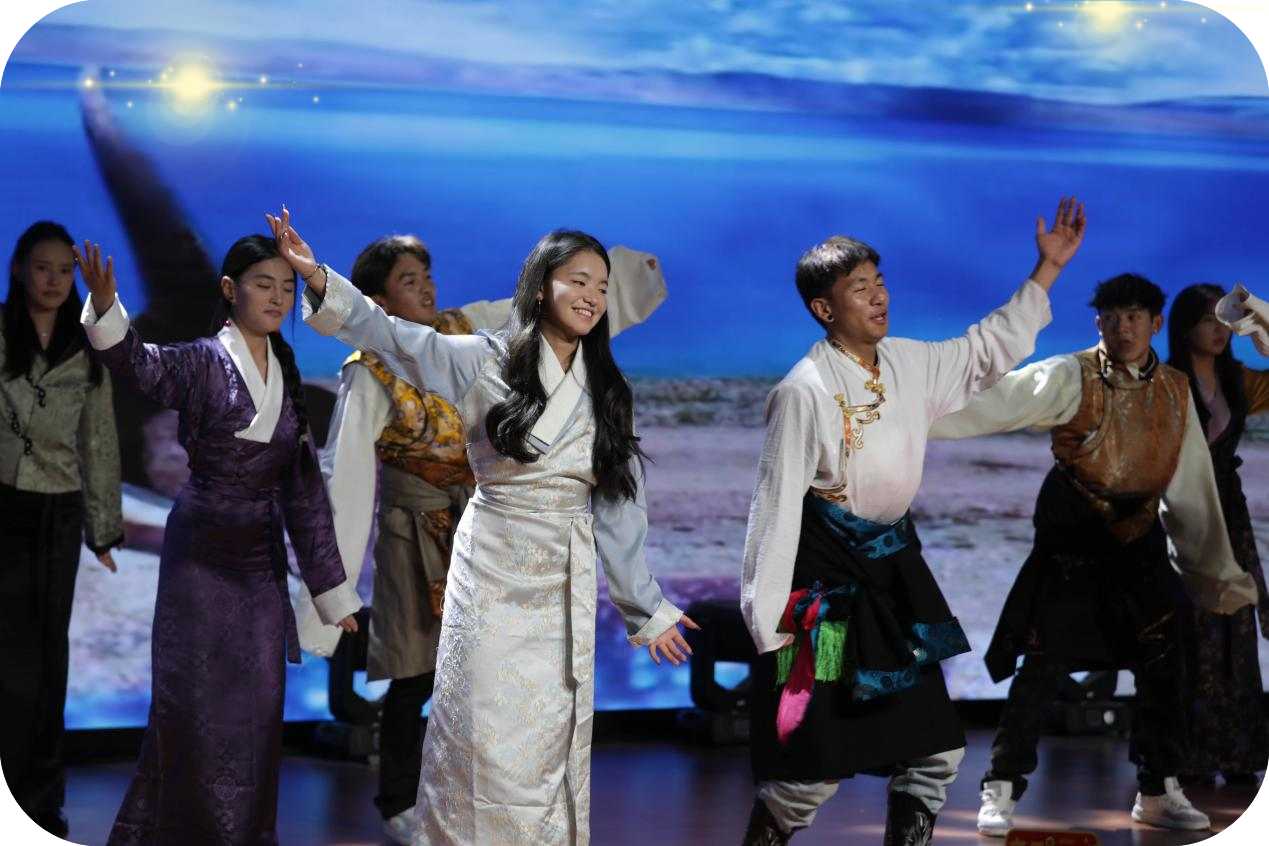 晚会下半场,文化传承的意蕴愈发浓厚。安徽国际商务职业学院藏族舞蹈部带来《丰收的喜悦》,以欢快的节奏和绚丽的民族服饰,展现了高原儿女庆祝丰收的喜悦之情,洋溢着浓郁的民族风情。廖思贤同学的一曲《红尘客栈》,用现代旋律勾勒古风意境;郑楷同学的吉他曲《无题》,则以自由的旋律诉说着青春心事。