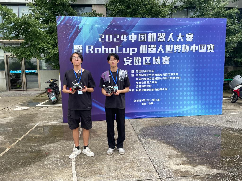 7月27日RoboCup安徽区域赛在合肥师范学院落下帷幕,我院2023级周建东、吴天龙同学获得基础组双车协同任务赛项第一名的好成绩。